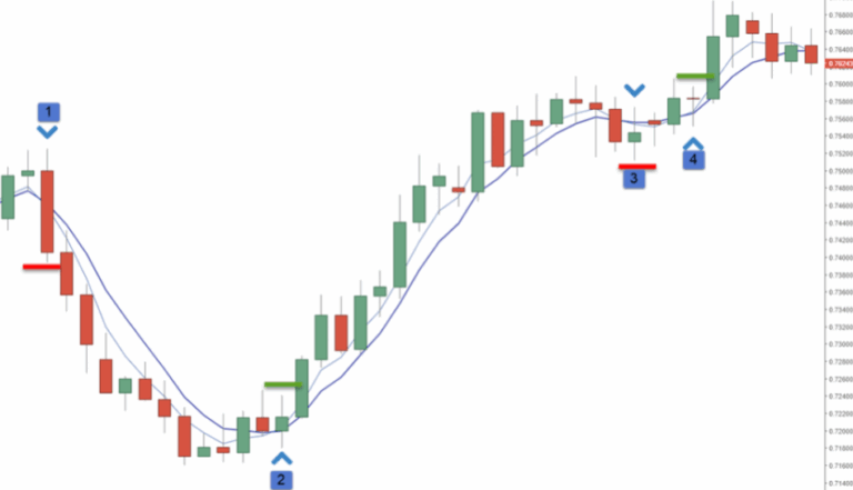 Technical analysis is the idea of predicting future market prices based on the previous market patterns. An example is the simple indicator like exponential moving average (EMA) to predict future trends as shown above. Using the EMA, investors are better able to predict when is a good time to sell or buy stocks. We can buy the stocks at 2 and sell it when the price is higher at either 3 or 4.